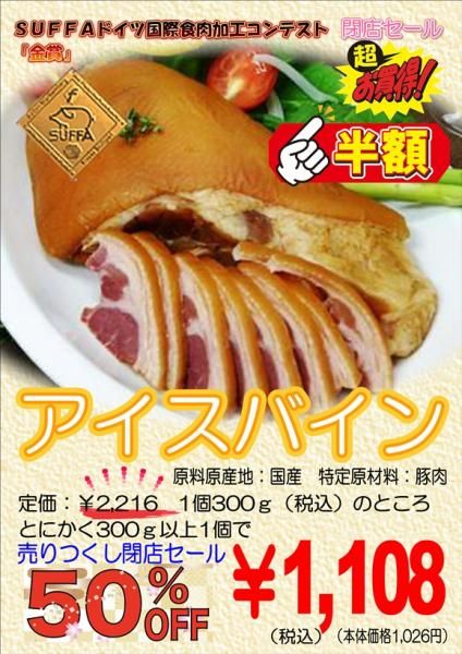 朝日屋手造りアイスバイン 1個 2005年SUFFA「金賞」